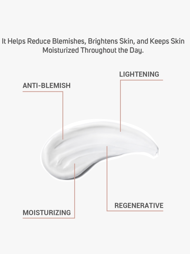 Helps diminished in appearance the blemishes on the skin from sea, wind, sun, etc. and keep your skin moisturized throughout the day