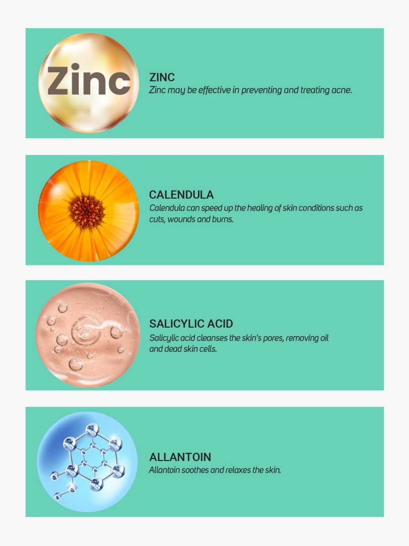 INGREDIGENTS:Aqua, Glycerin, Cocamidopropyl Betaine, PEG-120 Methyl Glucose Dioleate, Sodium Cocoamphoacetate, Disodium Laureth Sulfosuccinate, Alcohol, Phenoxyethanol, Polysorbate 20, Calendula Officinalis Flower Extract, Sodium Lauroyl Methyl Isethionate, Allantoin, Parfum, Sodium Methyl Oleoyl Taurate, Ethylhexylglycerin, Tetrasodium EDTA, Lauryl Glucoside, Coco-Glucoside, Salicylic Acid, Zinc PCA, Lactic Acid, Glycerin, Brassica Oleracea Acephala Leaf Extract, Aloe Barbadensis Leaf Juice, Echinacea Purpurea Extract, Chamomilla Recutita Flower Extract, Centella Asiatica Extract, Sodium Benzoate, Melissa Officinalis Leaf Extract, Hamamelis Virginiana Leaf Extract, Tilia Cordata Flower Extract, Pistacia Lentiscus Gum, Lecithin, Sodium Benzoate, CI 42090.