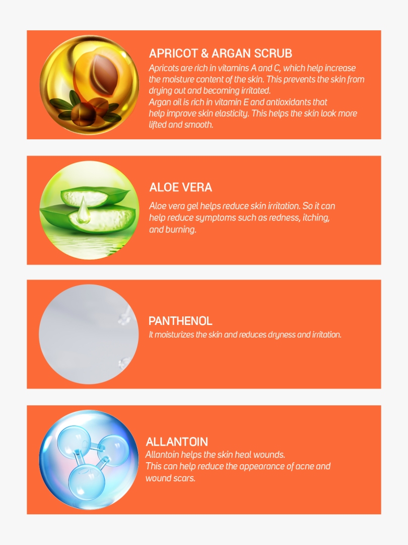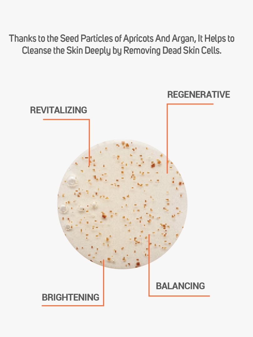 Thanks to the granulars in its content, it helps to clean the skin deeply by purifying it from dead skin. Thanks to its special formula, it helps to give the skin brightness and vitality by moisturizing the skin.