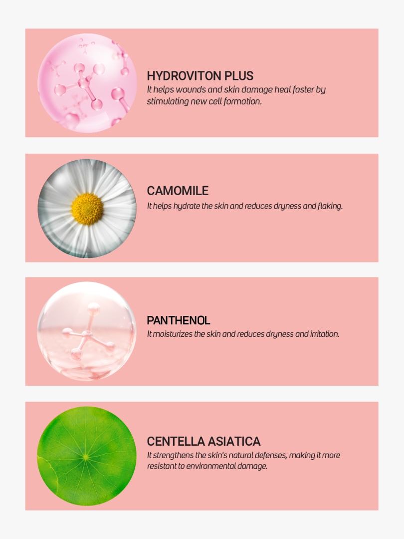 It cleans the pores deeply. Preserving the skin's natural humidity level, it helps to soothe dry and sensitive skin, giving it a lively and bright appearance.