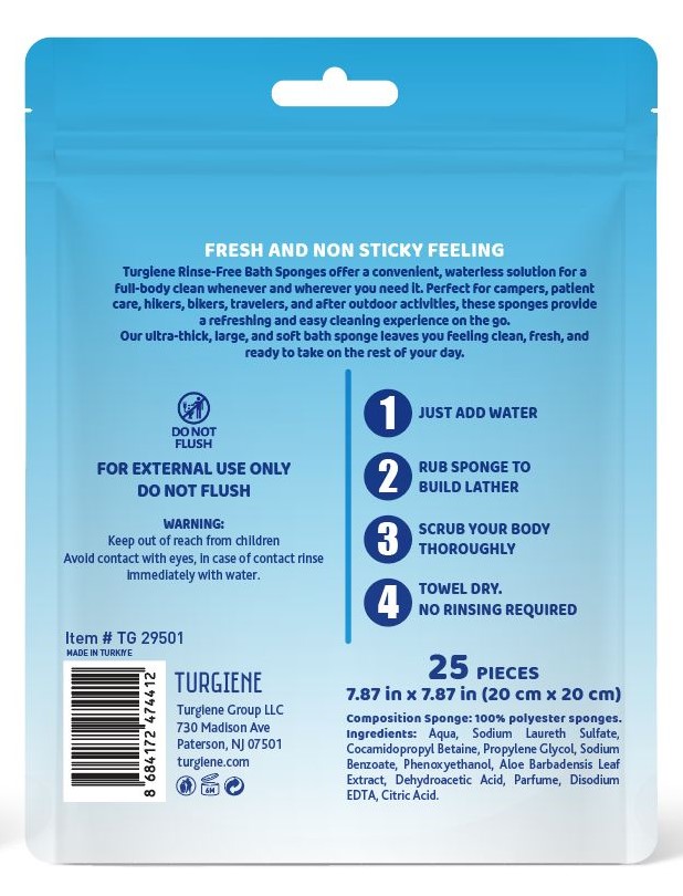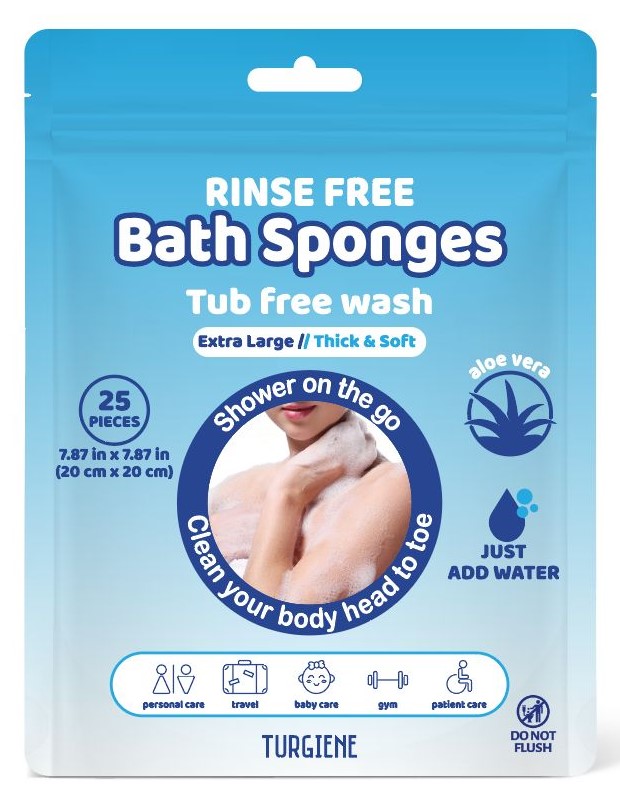 Turgiene Rinse-Free bath sponges offer a convenient, waterless solution for, full-body clean whenever and wherever you need. Perfect for campers, patient care, hikers, bikers, travelers, and after outdoor activates. These sponges provide a refreshing and easy cleaning experience on the go.